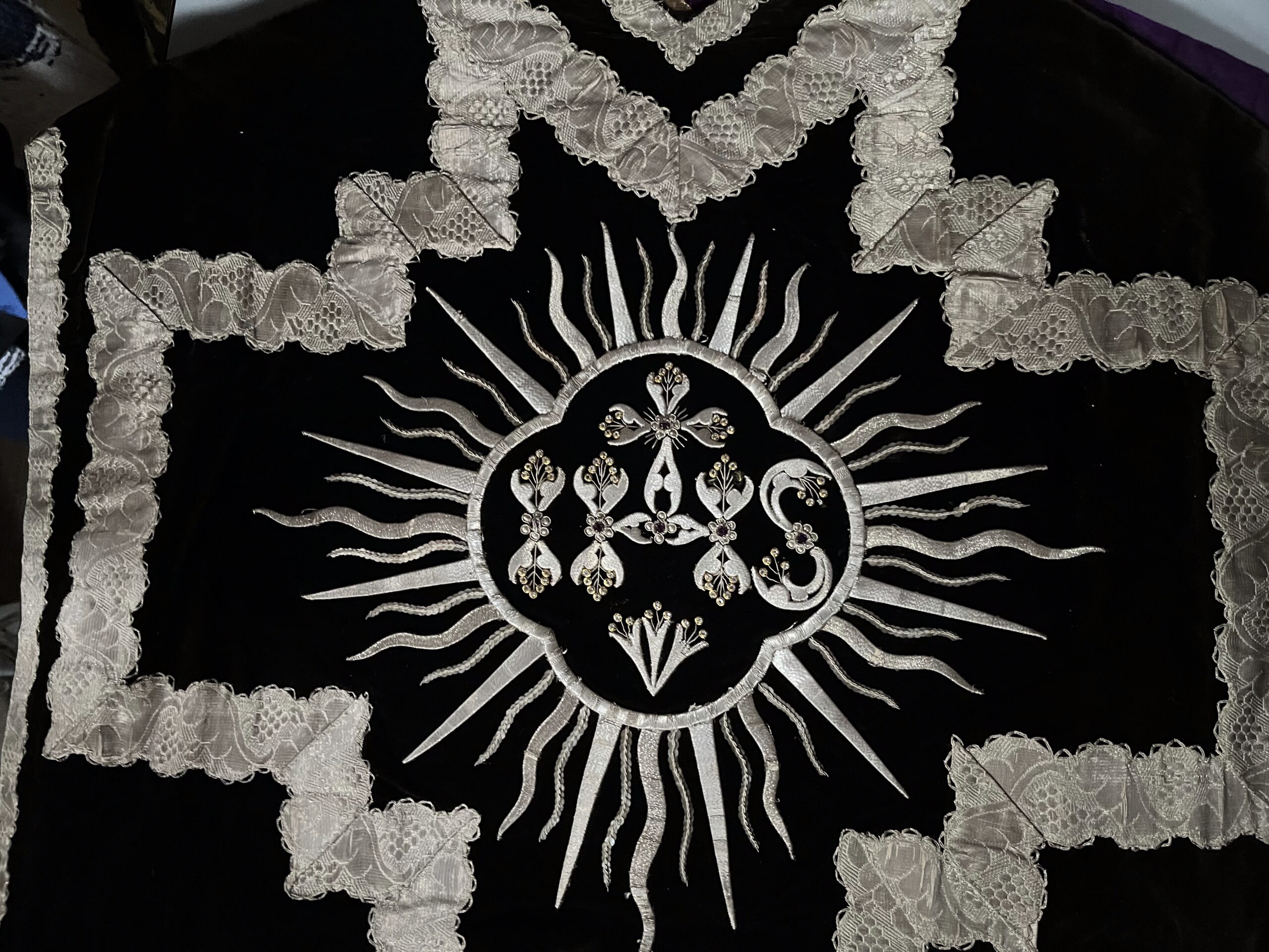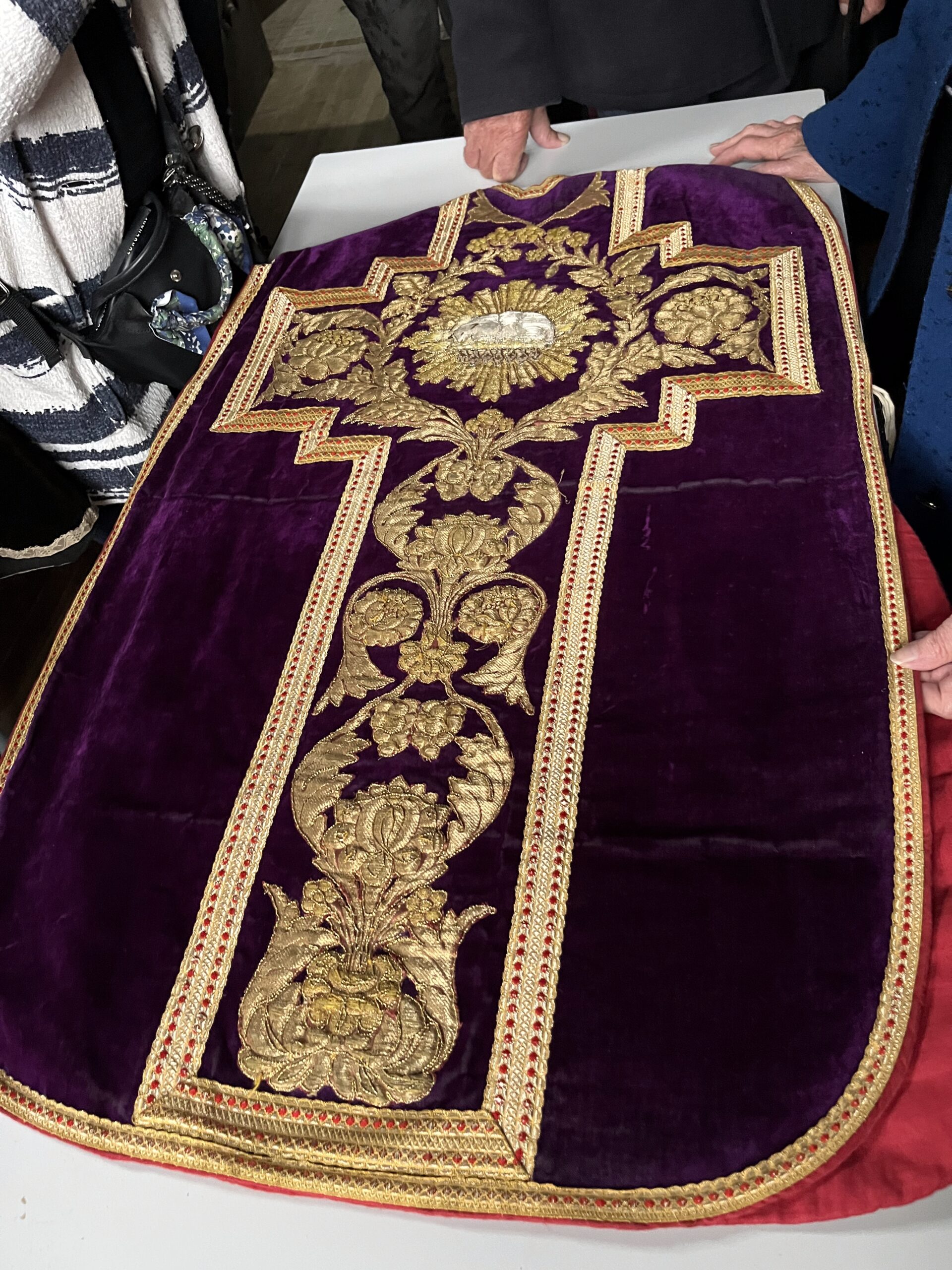 [INCERTAIN] La mention « j’ai trouvé dans la sacristie des documents de l’ancien arrière-grand-père » est une phrase interrompue — la conclusion n’a pas été enregistrée ou n’est pas audible. Il s’agit probablement de documents paroissiaux anciens qui préciseraient l’identité de la donatrice.